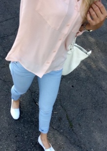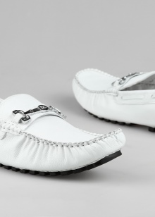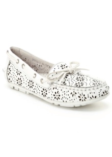 Érdekes íj hófehér mokaszinokkal hozható létre, ha visel egy finom nyakkivágású felsőt, egy laza ing és könnyű farmert.