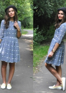 Könnyű ruhák, szoknyák és sundress ruhák, amelyek alsó részén vannak, jól néznek ki ilyen cipőkkel. A gyönyörű ruházat, fehér felső és virágmintás lesz a tökéletes együttes.
