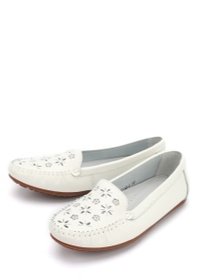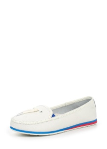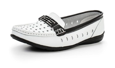 A fehér mokaszinok nem alkalmasak plusz méretű és alacsony természetű tulajdonosok számára. A zárt forma és a sarok hiánya miatt az figura guggolhat, vizuálisan lerövidítheti a lábait, és szélességet adhat a vállakhoz és a csípőhöz.