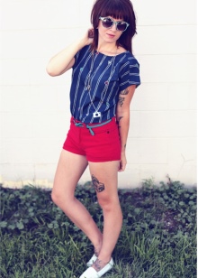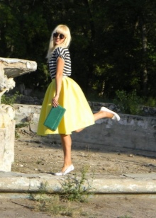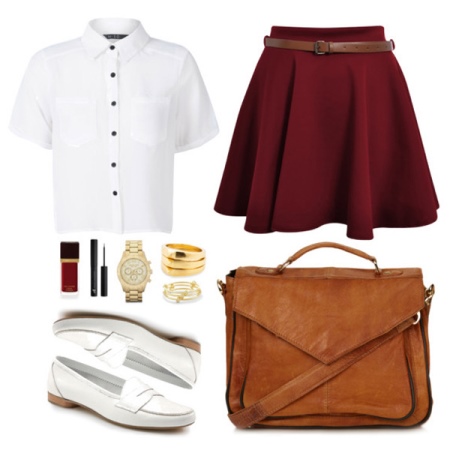 Romantikus találkozáshoz vagy baráti sétához egy rövid, élénk színű szoknya, a felső és a perforált mokaszin megfelelő.