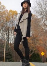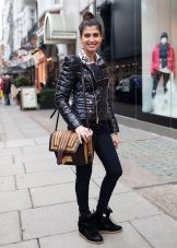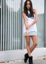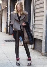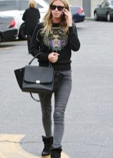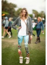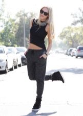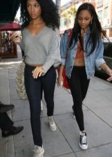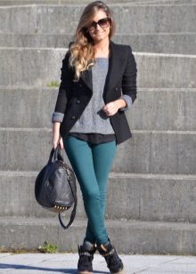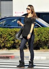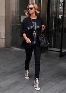 A cipők jól néznek ki a szorosan illeszkedő nadrágok különféle modelljeivel kombinálva. Az egyedi íj kiegészíthető vékony szövetből készült pulóverrel denevér ujjakkal vagy az ábrán látható pólóval. De ne feledje, hogy egy ilyen együttesben a nadrágot cipőkhöz kell illeszteni.