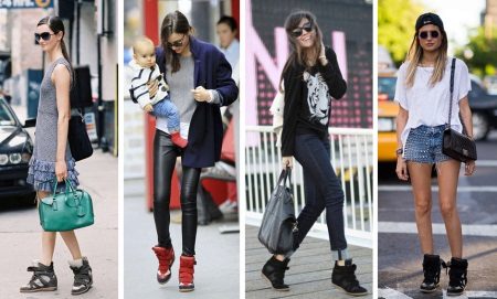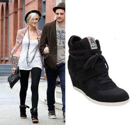 Az ék cipők jól viselkednek a rövid szoknyákkal és rövidnadrágokkal. A felső kiválasztásakor előnyben kell részesíteni a „pulóver” stílusú pulóvereket, dzsekikkel szemben pólót vagy vékony anyagból készült inget.