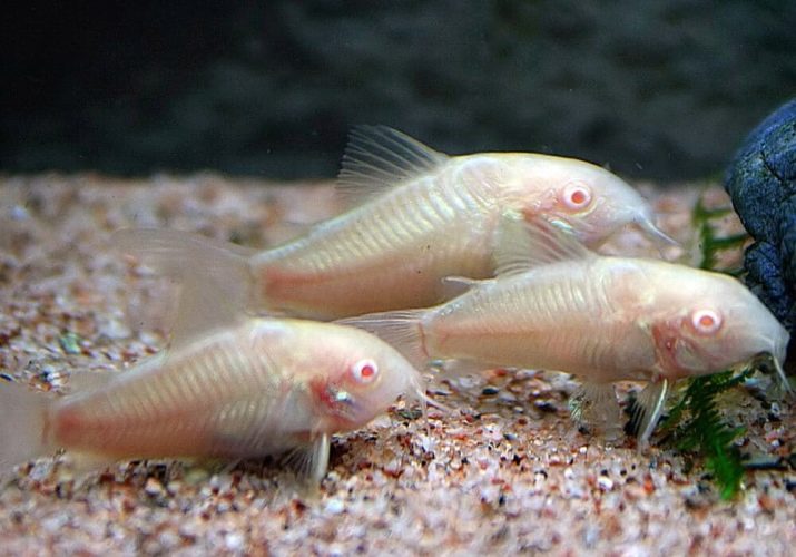 Molto raramente, ma puoi incontrare un'insolita varietà di questo pesce gatto - l'albino, non è pigmentato, tutto il suo corpo, compresi i suoi occhi, è bianco puro.