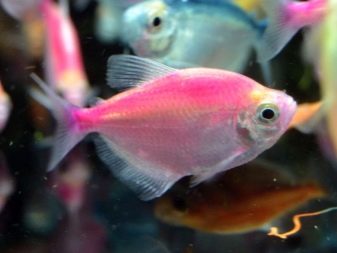 Vale la pena notare che la colorazione non influisce sulla coda e sulle pinne. Entrambi mantengono il solito tono nero o verde scuro; il contorno scuro della pinna lunga inferiore provoca un nome alternativo per la specie - lutto tetra.