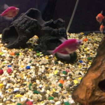 Poiché i caramelli formano greggi, non ha senso lanciarli da soli in uno stagno artificiale. È meglio usare 5-8 individui contemporaneamente. Nota: i pesci solitari non solo sopravvivono allo stress - spesso mostrano una forte aggressività. La colorazione può andare persa dopo alcuni mesi di manutenzione. Tutti gli acquariofili principianti dovrebbero essere pronti per questo.