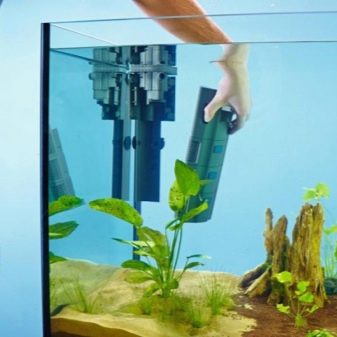 I sifoni con inserti trasparenti consigliano di pulire l'acquario. Tale dispositivo facilita notevolmente la pulizia. Ma i raschiatori per metallo non funzioneranno assolutamente. Se si desidera ridurre la pressione dell'acqua che passa attraverso il filtro, è montato su un'ampia parete dell'acquario.