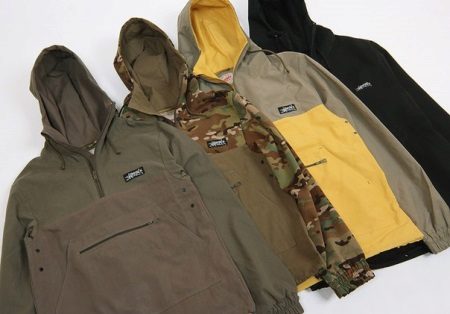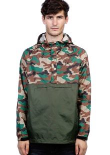 Giacca a vento mimetica si trova nella gamma di prodotti dell'azienda inglese Fred Perry, specializzata nella produzione di abbigliamento sportivo. Il loro modello ha una tasca capiente, decorata con velcro e polsini.