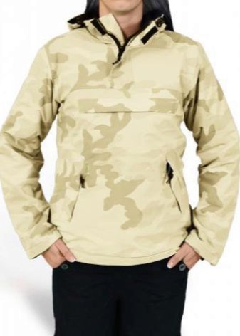 Anoraki sono caratterizzati da praticità e praticità. I modelli hanno cappuccio, coulisse, elastico sul fondo e polsini sulle maniche per proteggere da pioggia e vento. La giacca a vento può essere fino alla vita o alla metà della coscia.
