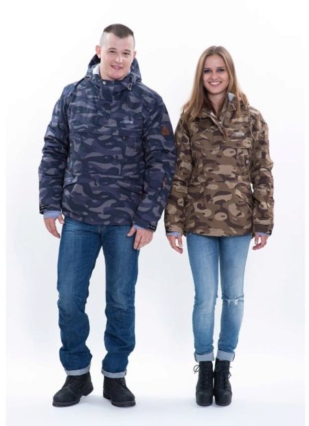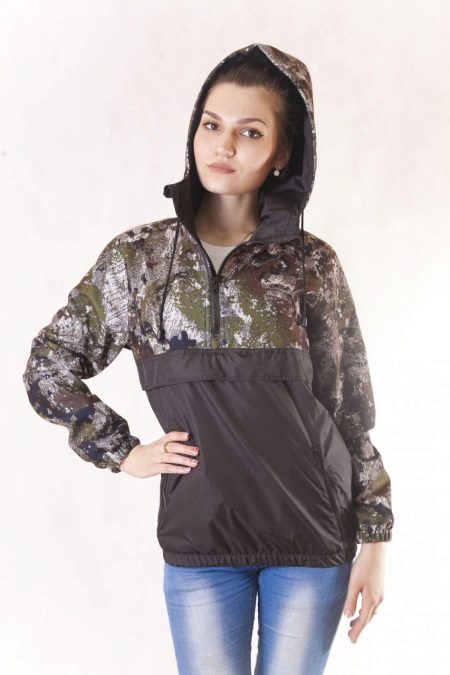 Oggi le giacche mimetiche sono alla moda, che differiscono non solo per praticità, ma anche molto eleganti. Il clou è una cerniera corta, quindi la giacca a vento è indossata solo sopra la testa.