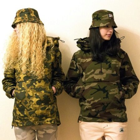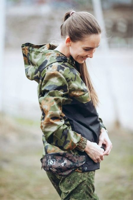 Le giacche mimetiche divennero popolari dopo essere state introdotte dal famoso marchio di strada del formichiere di Ekaterinburg. Questa azienda è impegnata nella produzione di vari stili di giacche da donna. Decisero di combinare la giacca a vento con interessanti colori mimetici.