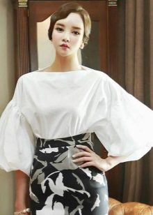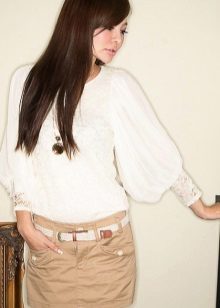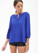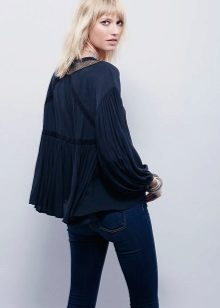 Le torce a maniche conferiscono alla camicetta un aspetto giocoso e senza pretese. Dal momento che sono abbastanza voluminosi, non sono raccomandati per essere indossati da ragazze piene, perché un po 'di volume extra verrà aggiunto visivamente ai chili in più esistenti.