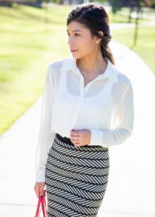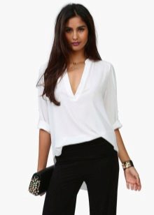Le camicette a maniche lunghe con scollo profondo o scollatura sul retro conferiscono al look un aspetto molto piccante e seducente. La presenza di una scollatura aperta è più che compensata da mani chiuse, che creano un equilibrio nell'immagine e non ti permettono di apparire volgare e audace.