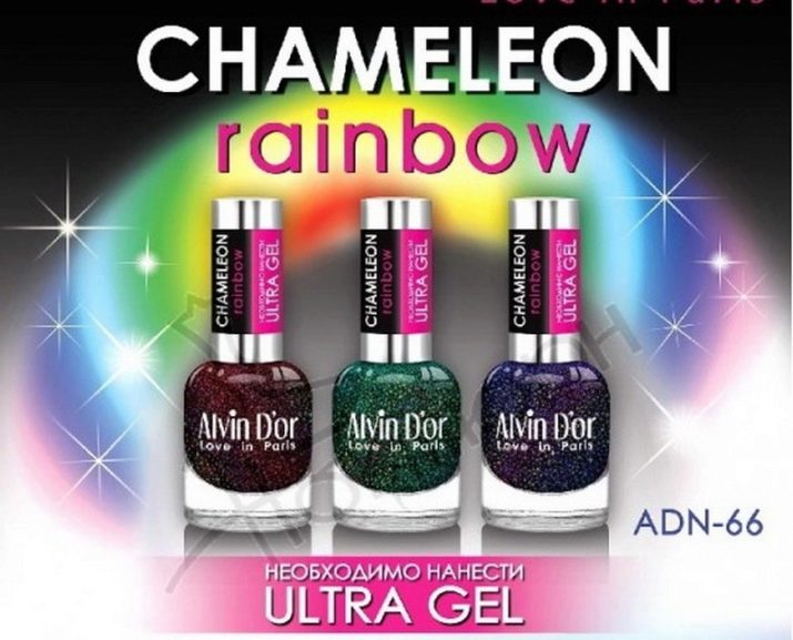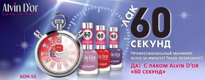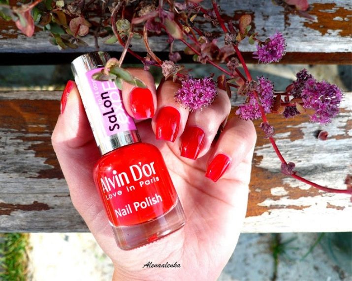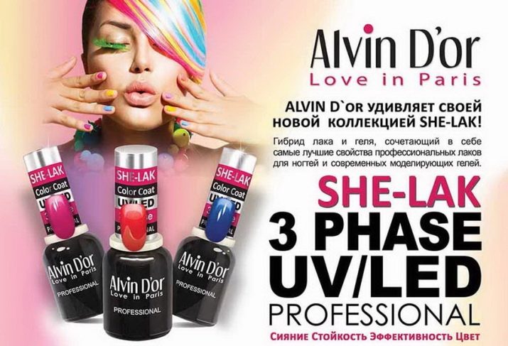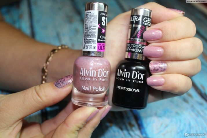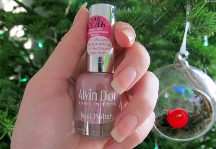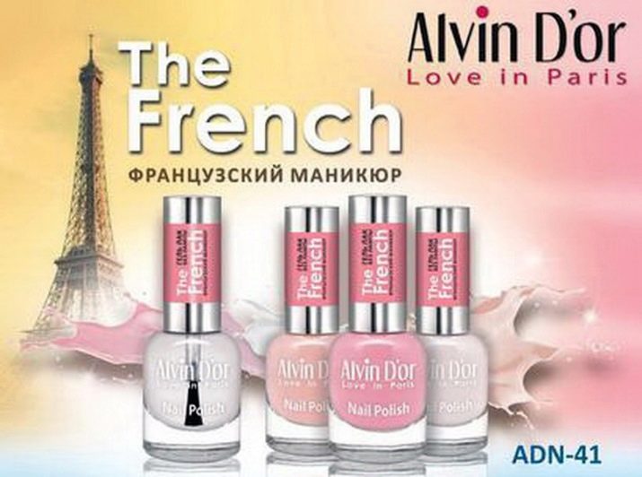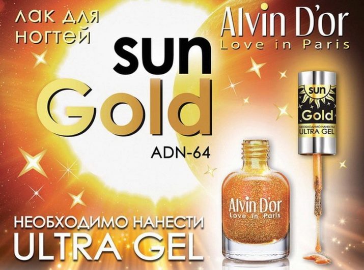 Le vernici Alvin D'or sono utilizzate non solo nei saloni di bellezza professionali, ma sono anche utilizzate per l'auto-applicazione. Le vernici al gel Alvin D'or sono molto popolari, perché un tale strumento non richiede l'essiccazione sotto una lampada UV.Per il loro indurimento, è necessaria solo la luce naturale. La collezione ha circa 140 colori diversi.