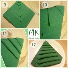 - Ora il pezzo deve essere girato sul retro. Per formare l'albero di Natale, è necessario piegare entrambe le sue parti simmetricamente, per così dire, nel mezzo.