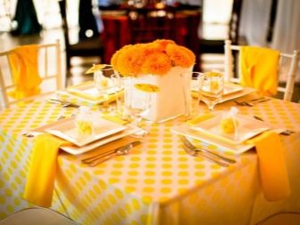 I prodotti tessili o di carta che scegli dovrebbero essere idealmente combinati con una tovaglia, così come altre decorazioni sul tavolo, ad esempio, con vasi con fiori.