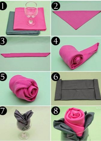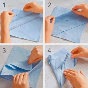 - Secondo tutte le regole, è vietato piegare i tovaglioli e farne fuori varie figure con le mani sporche o bagnate, altrimenti il loro aspetto può essere completamente rovinato e, di conseguenza, gli ospiti non avranno successo.