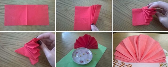 Il modo più semplice e originale può essere creando un ventaglio di tovaglioli di carta in diversi colori. Anche le artigiane inesperte che vogliono decorare magnificamente la tavola possono farlo.
