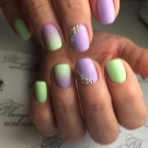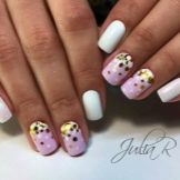 Un'elegante manicure sfumata attirerà l'attenzione.È perfetto per la sposa e puoi usare sia i tasti bianchi che quelli più luminosi. Tutto dipenderà dal concetto di celebrazione e dalla tua immagine. Le transizioni fluide sembrano sempre spettacolari. Possono essere integrati con vari elementi decorativi, ad esempio, decorare diverse unghie con strass, oltre a combinarsi con altre tecniche.