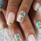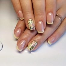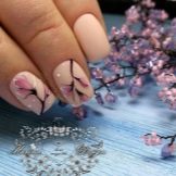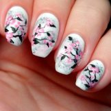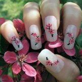 - Con disegni di fiori. Qualsiasi moderna manicure primaverile non farà a meno dei fiori. Qui puoi applicare diverse tecniche e tasti adatti alla tua immagine.Ad esempio, all'inizio della primavera sarà importante realizzare i rami della mimosa sulle dita. Apparirà elegante e alla moda.