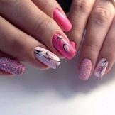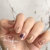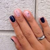 Una superficie ruvida o vellutata sembrerà attraente. Questa nail art è rilevante per diverse lunghezze di calendule. Puoi farlo a casa. Se vuoi creare un'opzione più festosa, puoi usare kamifubuki o sparkles. Saranno in grado di trasformare la normale manicure in una vera celebrazione. Questo design è perfetto per una passeggiata, una festa, un incontro con gli amici.