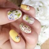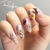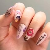 - Manicure stile erbario. Questa nail art sarà una grande aggiunta al look primaverile e persino estivo. La condizione principale sono le tonalità pastello e delicate. Puoi usare diversi colori: rosa, beige, bianco. È interessante notare che non è necessario disegnare nulla sulla lamina ungueale. Ecco perché questo design è ottimo per i principianti. Può essere facilmente realizzato da solo. Per l'arredamento, vengono utilizzati adesivi speciali che hanno una base trasparente. Dovrebbero essere accuratamente tagliati e applicati all'area della calendula. Dopodiché, tutto viene coperto con un piano e asciugato in una lampada. Un tale design è semplice, interessante ed eccitante.