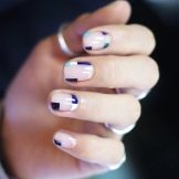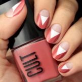 - Minimalismo. Una manicure primaverile con forme geometriche sembrerà semplice. È abbastanza semplice ma raffinato. Puoi creare strisce, linee cromate. Dovresti pensare in anticipo a tutte le piccole cose. Questa nail art è perfetta per qualsiasi lunghezza della lamina ungueale. Puoi usare vari riccioli, motivi, punti, elementi geometrici, combinare tutto con diversi stili nei vestiti.