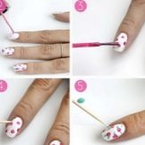 - Successivamente, l'arredamento desiderato viene disegnato e anche polimerizzato. Quando il design creativo è pronto, dovresti coprire le dita con uno strato superiore e asciugare accuratamente in una lampada.