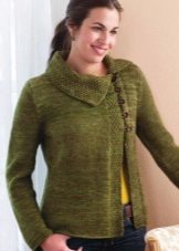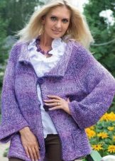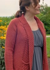 Il brillante colore succoso del cardigan è un punto culminante nel look, dandogli un umore gioioso e soleggiato. Uno stile interessante sotto forma di onde cadenti asimmetriche nasconde notevolmente la pancia sporgente e l'assenza di un dispositivo di fissaggio sottolinea un torace piuttosto grande. La lunghezza delle maniche ¾ in questo design in maglia nasconde le braccia piene e allo stesso tempo ti consente di mostrare polsi puliti.