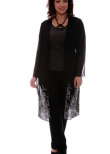 Cardigan allungati possono essere combinati con qualsiasi fondo, che si tratti di pantaloni classici, jeans o una gonna. Le uniche eccezioni sono i modelli lussureggianti, poiché in un tale ensemble andranno persi sia il cardigan che la gonna.