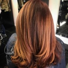 - Biondo ramato. Questo colore è raro in natura. Tali capelli devono avere una sfumatura di cioccolato, che può essere combinata con miele e caramello. Grazie a questi colori, la tonalità naturale dei capelli brillerà in un modo nuovo, rendendo l'immagine della ragazza fresca e solare.