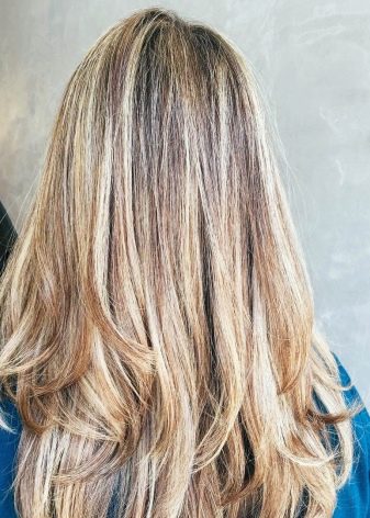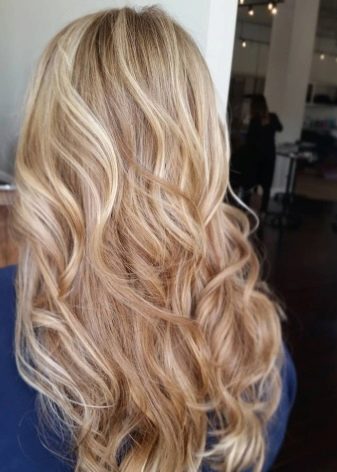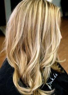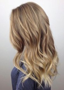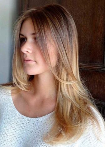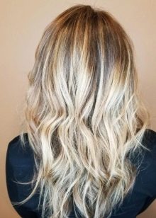Per i proprietari di lunghi capelli biondi, è meglio usare la colorazione verticale secondo la tecnica ombre con 3-4 colori che sono vicini al naturale. Se fatto correttamente, otterrai una transizione graduale delle sfumature alle estremità.