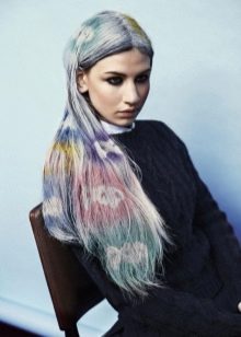 Semplificare questa procedura aiuterà stencil speciali attraverso i quali la composizione viene applicata sui capelli. Per fare questo, i capelli non lavati vengono pettinati e levigati, uno stencil viene applicato sull'area selezionata, ripararlo e distribuire accuratamente i colori di vernice precedentemente selezionati.