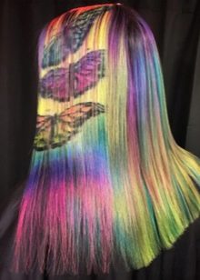 Le ragazze coraggiose possono sperimentare colori più luminosi, preferendo il rosso, il blu e il verde. Come materiale di pittura, si consiglia di utilizzare gel instabili, che possono essere facilmente lavati nel tempo. Se una fashionista ha abilità di colorazione, allora può essere fatta con la pittura a motivi usando vari toni.