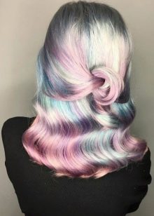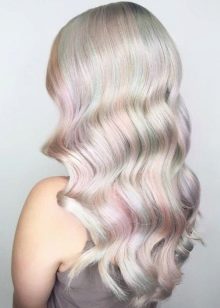 - Madreperla Per eseguire una tale colorazione, sono richiesti coloranti speciali che conferiscono ai fili un trabocco delicato e una leggera brillantezza di madreperla. Allo stesso tempo, puoi colorare sia la zona della radice, le estremità e i riccioli selezionati individualmente.