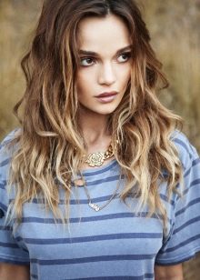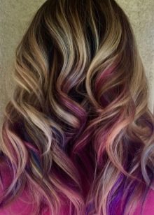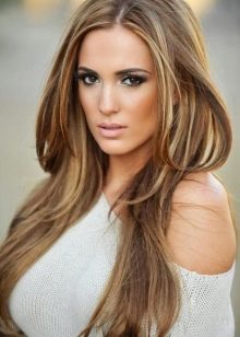 La colorazione è un tipo di colorazione moderno e alla moda, in cui i singoli fili acquisiscono un'ombra. Per dipingere i riccioli marrone chiaro di solito usano diversi colori naturali, che possono essere più scuri o più chiari della tonalità naturale dei capelli. Se una ragazza vuole attirare l'attenzione del sesso opposto in modo insolito, allora può scegliere toni più contrastanti.