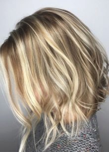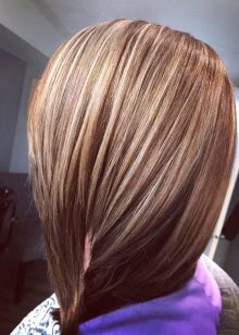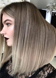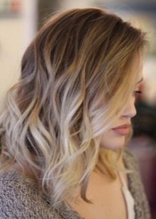 Ora le acconciature di media lunghezza sono molto popolari tra le ragazze. Al fine di enfatizzare favorevolmente la bellezza dei fili marrone chiaro, gli stilisti consigliano di utilizzare la colorazione della California, dopo di che le radici risultano dipinte in un tono scuro e le estremità in luce. Per implementare questa tecnica, vengono solitamente utilizzati toni di frassino e castano chiaro.Grazie a questo metodo di pittura, viene creato un effetto insolito di fili bruciati.