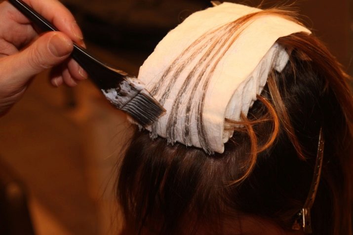 - la pittura inizia dalle zone laterali, la composizione colorante viene applicata dalle radici alle estremità, quindi i fili sono avvolti in un foglio e possono resistere al tempo specificato nelle istruzioni;
