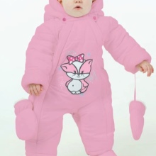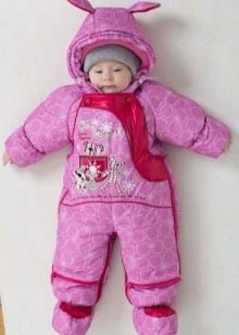 - Per le ragazze, puoi trovare una bellissima tuta rosa. Può essere decorato con un simpatico coniglietto, Winnie the Pooh, orsacchiotto e altri personaggi fiabeschi. In tali tute, ogni ragazza sembrerà una principessa.