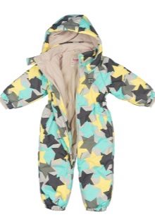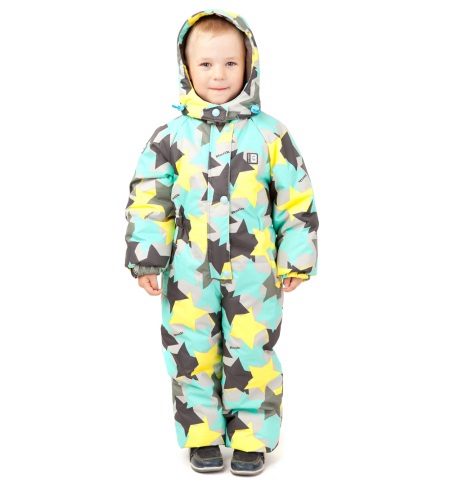 La tuta "Owlet" è un pezzo unico. Protegge in modo affidabile il bambino da vari fenomeni meteorologici. Comodo cappuccio, polsini con elastici e speciali supporti per scarpe impediscono alla neve di infilarsi sotto i vestiti. Questo modello ha un design luminoso e insolito. Le stelle multicolori donano alla tuta fascino e bellezza.