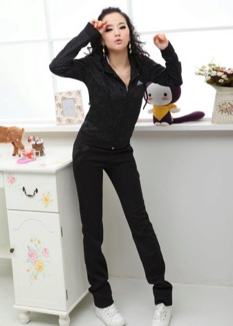 Di recente, in connessione con la divulgazione degli sport, sono diventati popolari modelli aderenti di tute sportive in cui puoi dimostrare la bellezza del tuo corpo allenato. Invece di pantaloni, di solito usano leggings o leggings e la classica felpa è una giacca a vento attillata. Tali modelli non sono adatti per l'uso quotidiano, quindi è meglio indossarli per visitare la palestra o qualsiasi evento sportivo.