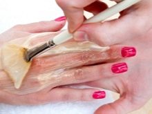 Le maschere vengono applicate sulla lamina ungueale con delicati movimenti di massaggio. I prodotti vengono accuratamente strofinati direttamente sull'unghia e sulla cuticola. Dopo aver completato la procedura, puoi indossare guanti di cotone e lasciare la maschera per diverse ore sulle mani.
