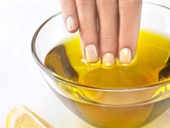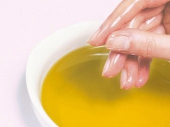 In casi di emergenza, l'olio può anche essere usato come bagno. L'olio di oliva, di mandorle e di ricino è più adatto per rafforzare la lamina ungueale. L'olio d'oliva può essere acquistato in qualsiasi negozio di alimentari e l'olio di ricino e di mandorle è venduto in piccoli barattoli nelle catene di farmacie. In proporzioni uguali, mescolare gli oli e immergere le unghie nel bagno per 15 minuti in modo che la piastra sia completamente coperta di liquido. Dopo la procedura, asciugare le mani con un tovagliolo per rimuovere l'olio in eccesso e massaggiare il resto del prodotto nella piastra e cuticola con movimenti massaggianti, quindi lasciare in ammollo l'olio rimanente. Meglio indossare guanti di cotone per alcune ore e, se possibile, per la notte. Un tale bagno aiuterà a ripristinare rapidamente la struttura delle unghie danneggiate dall'estensione o dallo smalto gel.