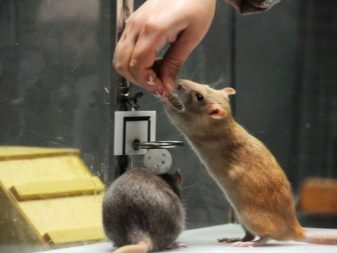 Per prima cosa devi aprire la porta, chiamare l'animale per nome, tirare leggermente la scodella di cibo e solo dopo mettici dentro una sorpresa. I ratti decorativi sono abbastanza giocosi, quindi è necessario passare il tempo ogni giorno a giochi con animali.