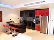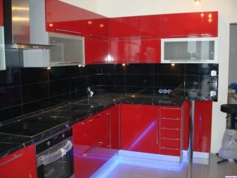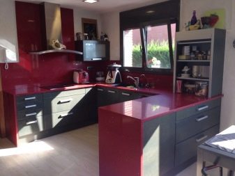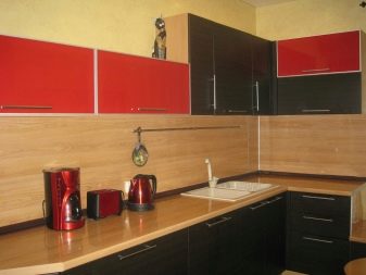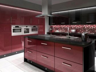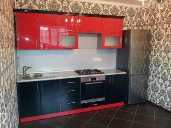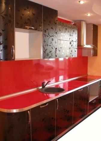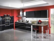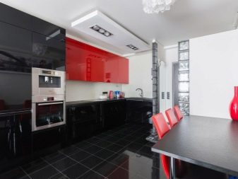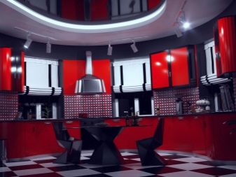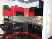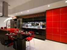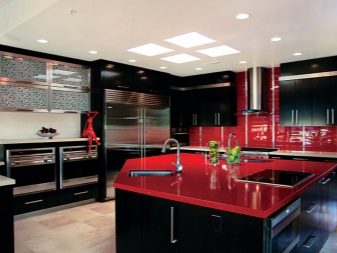 Ci sono alcuni svantaggi. L'auricolare rosso-nero richiede la giusta scelta di illuminazione, molti stili di design non funzioneranno per questo, dovrai abbandonare gli accessori artistici. Il colore saturo può essere troppo eccitante per il sistema nervoso e l'abbondanza di oscurità porterà alla sua oppressione. Una soluzione coloristica pianificata in modo errato sembrerà ridicola. Ma se tutto è fatto correttamente, la cucina rosso-nera diventerà una vera decorazione degli interni.