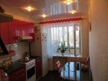 Inoltre, è possibile utilizzare l'auricolare con una disposizione parallela di armadi in 2 file - su pareti opposte e spostare l'area da pranzo sulla finestra.