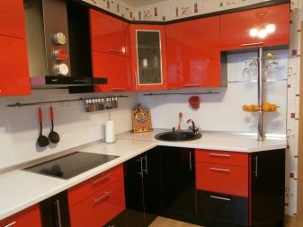 Cosa scegliere, un angolo e un set da cucina dritto in nero, bianco e rosso nel design degli interni o un design laconico bicolore di un set di mobili: ci sono molte opzioni.