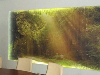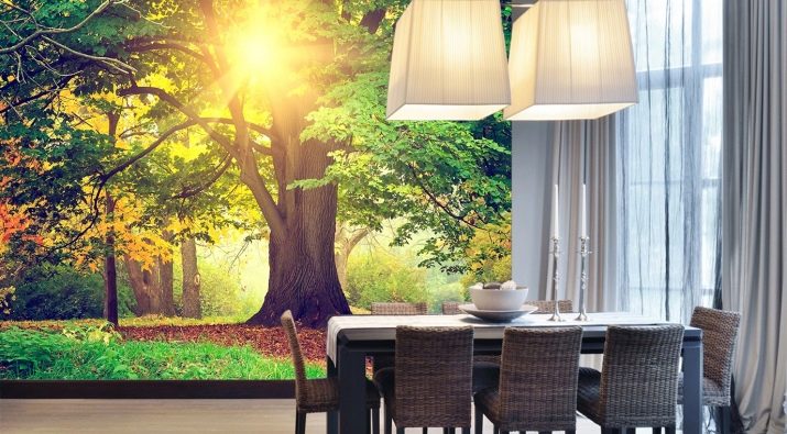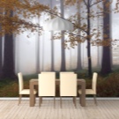 Campi di lavanda con sagome di mulino si adatta perfettamente all'umore della Provenza. Foresta nebbiosa - Una soluzione insolita ed elegante adatta al minimalismo. Nel paese, l'immagine sarà appropriata boschetto di betulle verde. Se non aderisci a uno stile particolare, ma semplicemente disegni la stanza a tuo piacimento, puoi scegliere tutto quello che vuoi: cascata, autunno dorato nel parco, paesaggio innevato e t. d.
