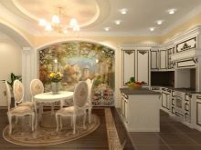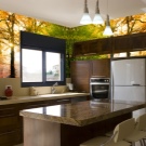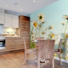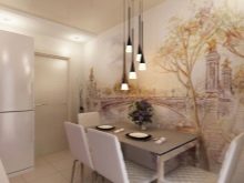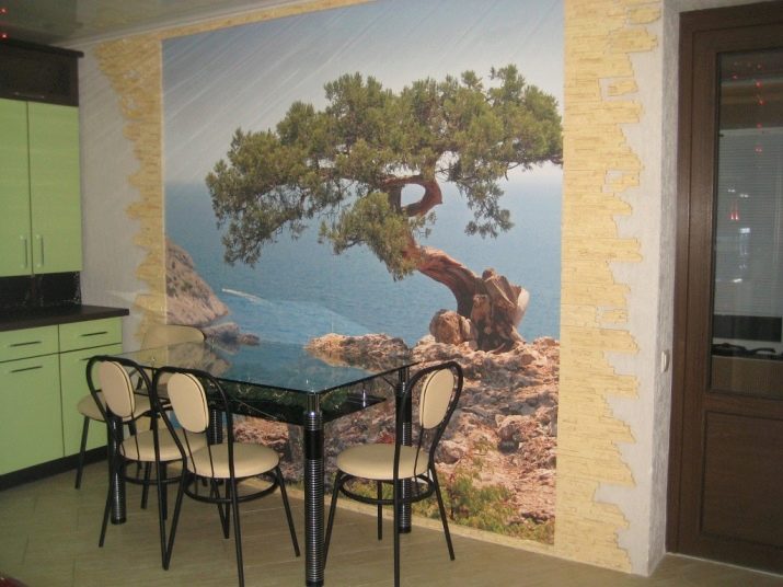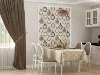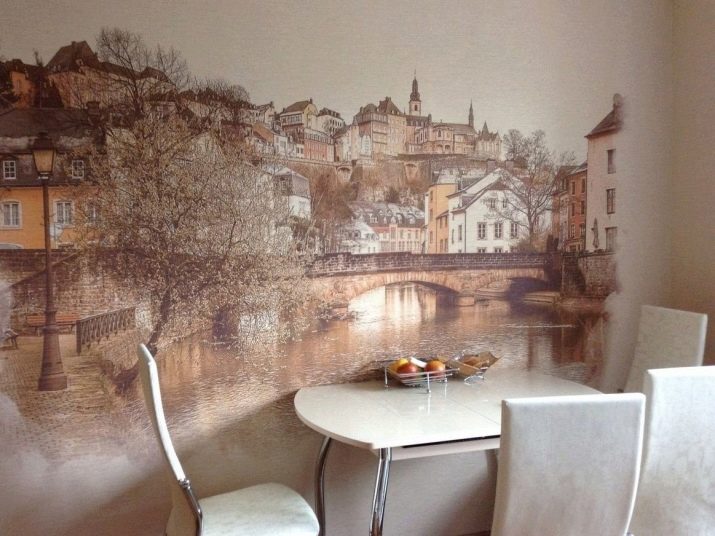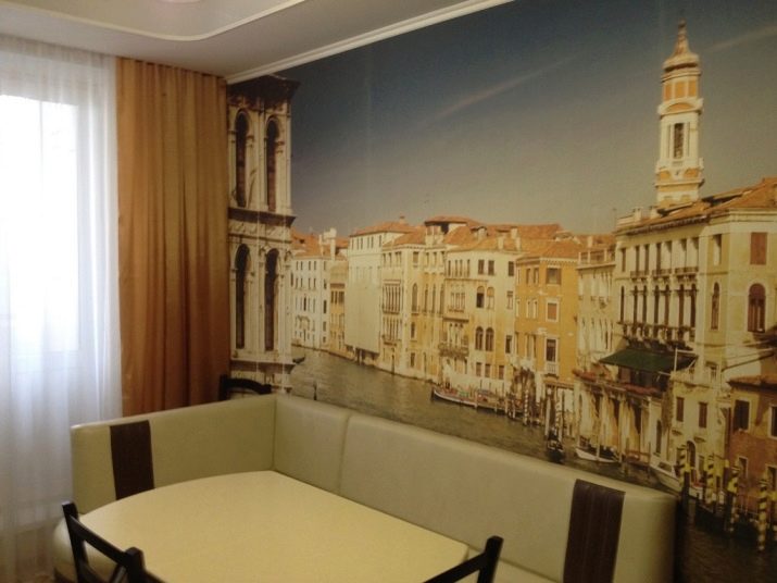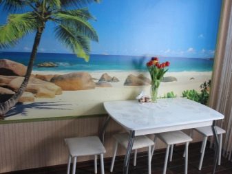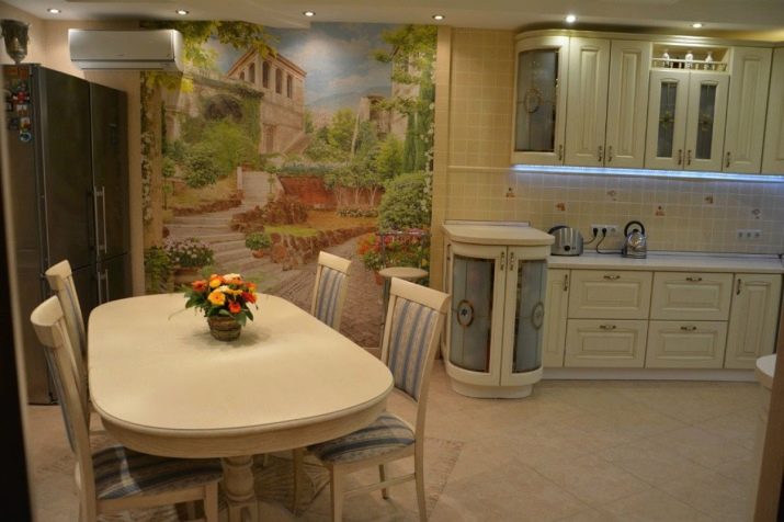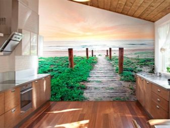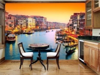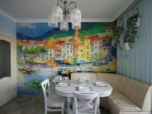 Come già accennato, per le piccole stanze, si consigliano immagini panoramiche con colori chiari, creando l'effetto di freschezza, spaziosità. La scelta di opzioni per decorare grandi cucine è molto più ampia.