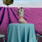 Una soluzione insolita adatta allo stile country è una foto girasoli. lavanda - uno degli elementi spesso usati nella Provenza romantica.