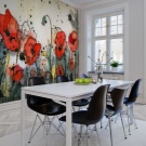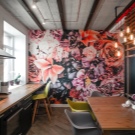 L'opzione più comune è decorare con uno sfondo un'intera parete libera. Di solito l'enfasi è sul lato ampio della stanza. Puoi attaccare i murales in una nicchia, su una parte sporgente del muro o su una partizione (in un monolocale).